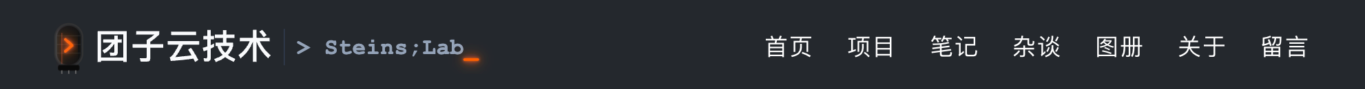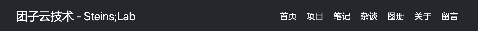 定完字体栈以后,笔者盯了一眼顶栏——还是那一行光秃秃的"团子云技术 – Steins;Lab"纯文字。后面正文区、卡片、侧栏、页脚都要动,但顶栏先成了视觉短板:和内容区摆在一起,它像是从旧模板直接撕下来贴上去的。品牌没有识别点、中英文平级、hover 只是底线变白——连"当前在哪一页"都看不出来。